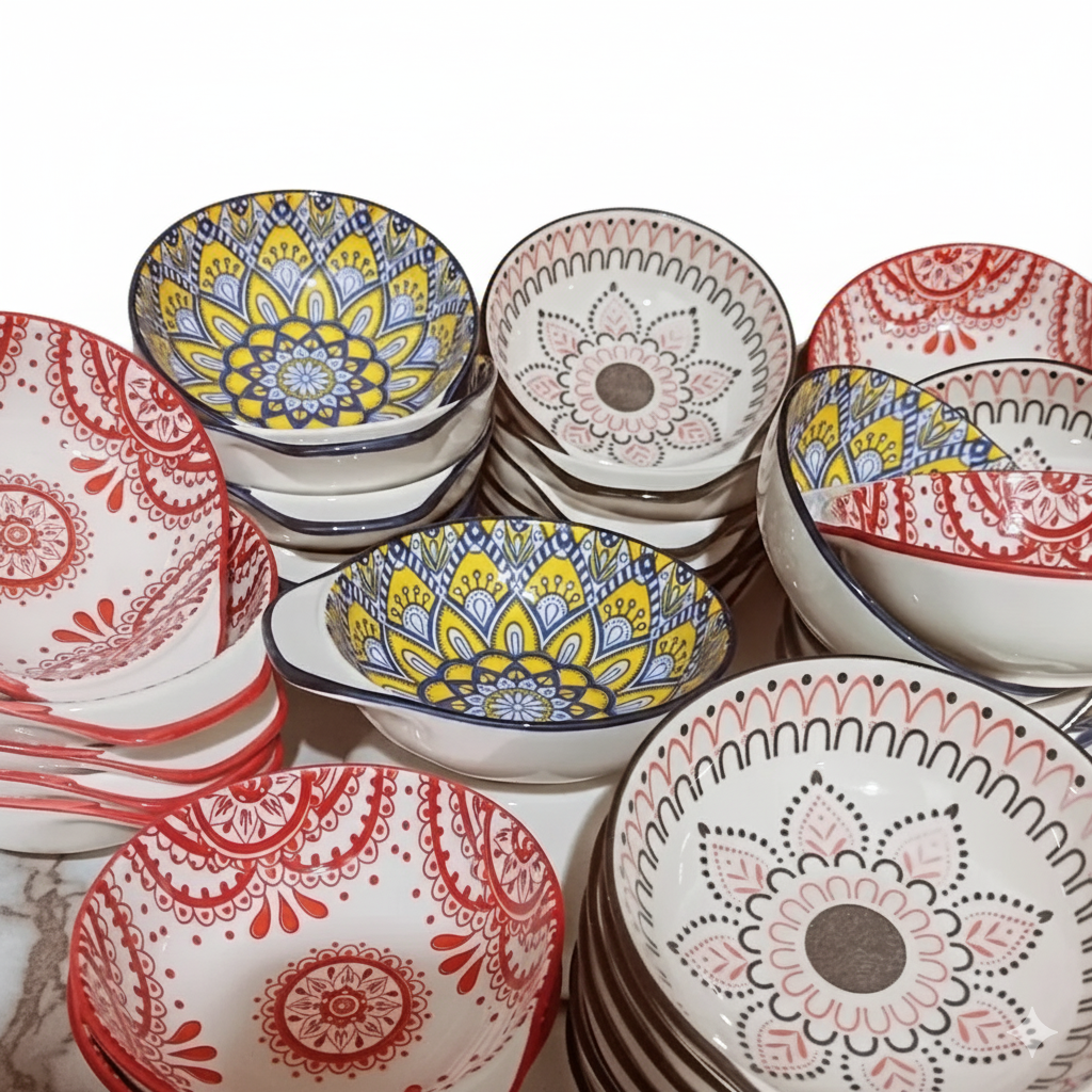 مناسب آجیل،تنقلات،مزه خوری، ماست و سالاد شیرازی بسیار زیبا و کاربردی پیاله های طرحدار مدل گپ وارداتی پک 6عددی رنگ رندوم
