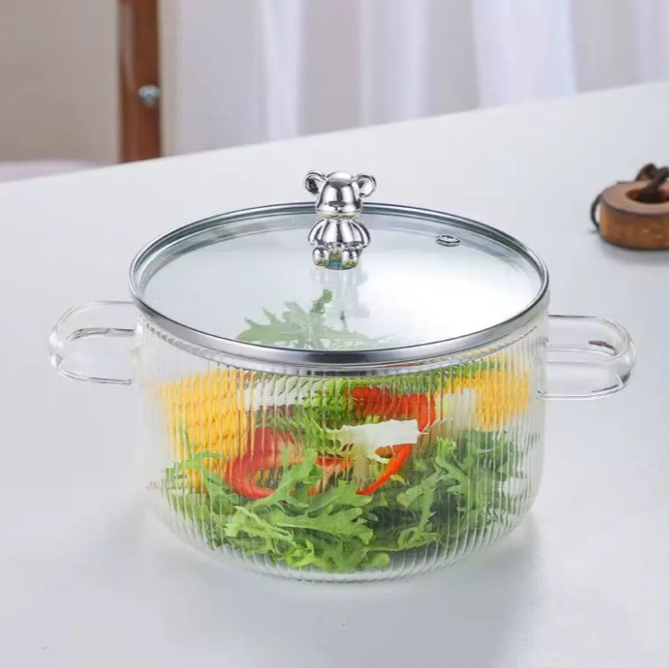 قابلمه پیرکس خرسی شعله مستقیم ،آشپزی شیشه ای از شیشه بوروسیلیکات با درجه مواد غذایی، 100٪ بدون سرب، غیر سمی ساخته شده است، سالم تر از ست پخت و پز پلاستیکی یا فولادی ضد زنگ است.