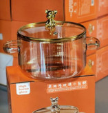 قابلمه پیرکس خرسی شعله مستقیم ،آشپزی شیشه ای از شیشه بوروسیلیکات با درجه مواد غذایی، 100٪ بدون سرب، غیر سمی ساخته شده است، سالم تر از ست پخت و پز پلاستیکی یا فولادی ضد زنگ است.