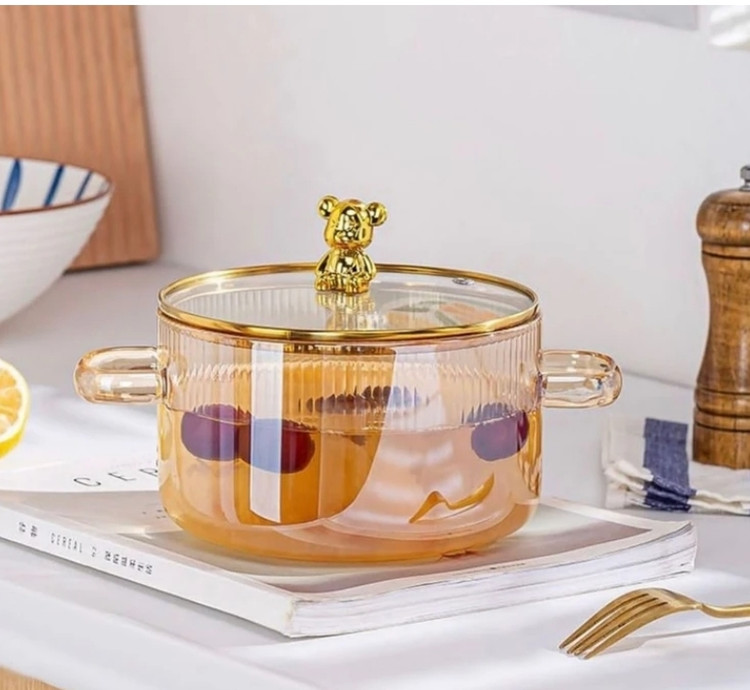قابلمه پیرکس خرسی ظاهر زیبا و بسیار مفید و روی میز شام عالی به نظر می رسد. می توانید پاستا، شیر، رشته فرنگی، سوپ، کیک یا غذای کودک یا هر چیزی که فکرش را بکنید در قابلمه درست کنید.